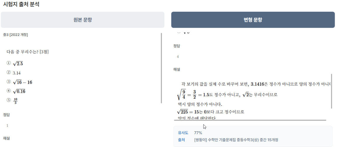 🐻 학교별 시험지 출처 자동 분석, 쌍둥이 유사문제 PDF까지 제공해드려요.