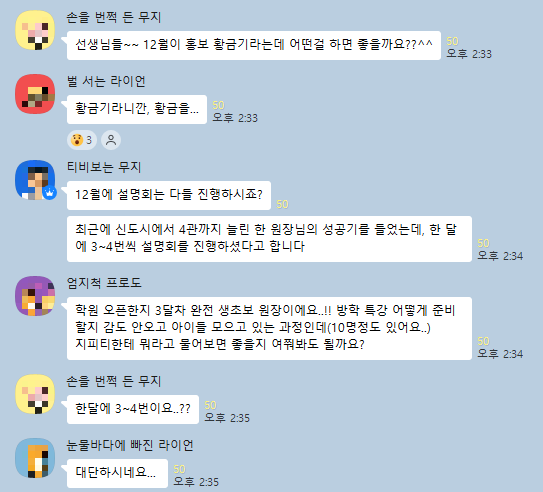 ▶️ 다양한 학원/수업 관련 고민과 수다 떨 공간이 필요했던 선생님